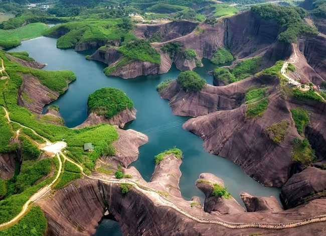 抵達后,前往郴州抖音最火網(wǎng)紅打卡地【高椅嶺】(游覽時間約3.5小時)。車覽【馬皇丘大峽谷】,峽谷原為一條小路穿行而過,現(xiàn)為一條漂亮的馬路,卻造就了另一種景觀,其中絕壁上的酷似女性私處【陰元石】更是丹霞景觀一絕。而后徒步高椅嶺,欣賞絕美之丹霞碧水,【巨蜥臥水】。先是歷經(jīng)【瓜石頸】之天梯險境,再是近距離感受【羊牯石】景區(qū)之絕美。從高處往下鳥瞰瓜石頸,一條清澈美麗的“天河”蜿蜒穿行在丹霞地貌之間,或?qū)捇蛘?,蔚為大觀,從羊牯石景區(qū)原路返回至瓜石頸,沿另一條石級自上而下欣賞水中“巨蜥”形神兼?zhèn)渲^美,驚于大自然的造化與鬼斧神工。這一片丹霞碧水,因為丹霞地貌周邊有漂亮的水洼點綴,美得一塌糊涂。