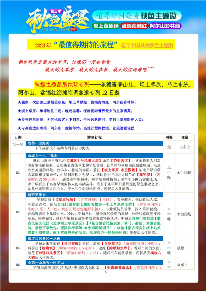2023年8月16日,綿陽(yáng)中旅行假日旅行舉行2023年秋攝三絕壩上阿爾山紅海灘空調(diào)旅游專(zhuān)列12日游推薦會(huì),主持人熱情洋溢的到場(chǎng)的嘉賓們介紹了追尋中國(guó)美秋色主題游“秋色盛宴”第三季純玩空調(diào)專(zhuān)列12日游的線(xiàn)路詳細(xì)內(nèi)容。